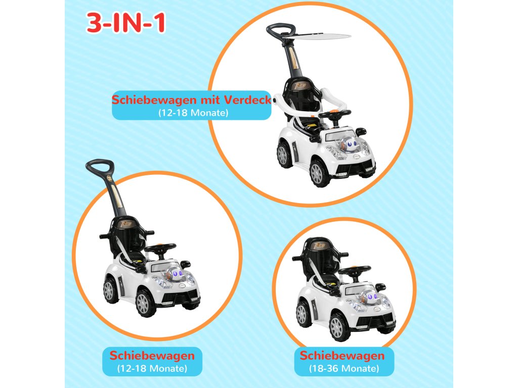 - Všestranná zábava: Toto jezdící autíčko 3 v 1 roste s vaším dítětem. Přemění se z odrážecího kočárku (12-18 měsíců) na jezdící autíčko s bezpečnostní ohrádkou a nakonec na autíčko pro batolata s rukojetí (18-36 měsíců).
