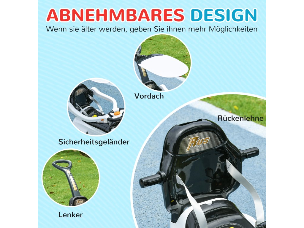 - Možnost přizpůsobení: Díky odnímatelnému pedálu, bezpečnostní ohrádce, rukojeti a opěrce zad nabízí toto autíčko s odrážedlem pohodlnou a bezpečnou jízdu pro batolata.
