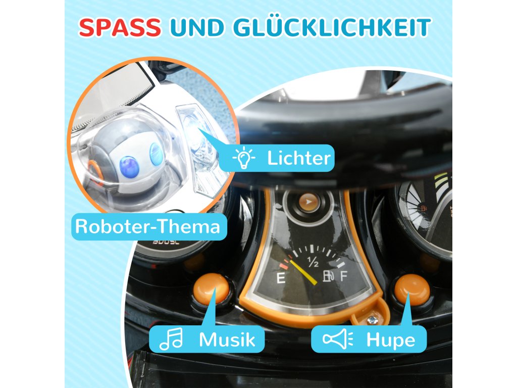 - Bezpečné a zábavné: Naše robotické autíčko pro batolata je vybaveno světly, hudbou a klaksonem, které vaše dítě zabaví. Je vyrobeno z bezpečných materiálů, jako je plast a kov, a zaručuje tak bezpečnou jízdu.