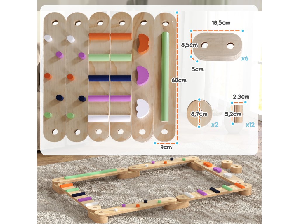 - Rozvíjejte balanční dovednosti: Tato speciálně navržená dětská balanční hrazda hravě zlepšuje koordinaci a obratnost. Díky variabilním tvarům nabízí rozmanitou zábavu a podporuje učení. Ideální volba dárku k narozeninám nebo Vánocům