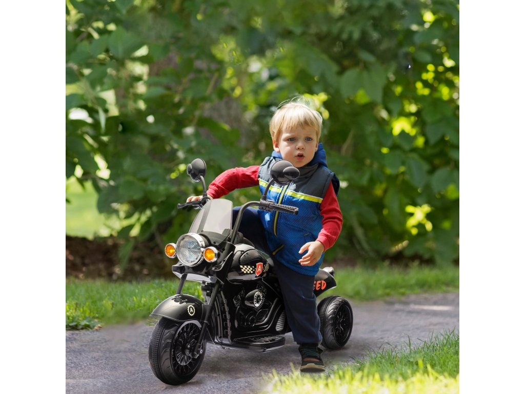 AIYAPLAY dětská elektrická motorka, 6V dětská motorka s hudbou, dětské vozidlo s LED světlometem, 3-5 km/h, pro děti 3-6 let, max. 25 kg, černá