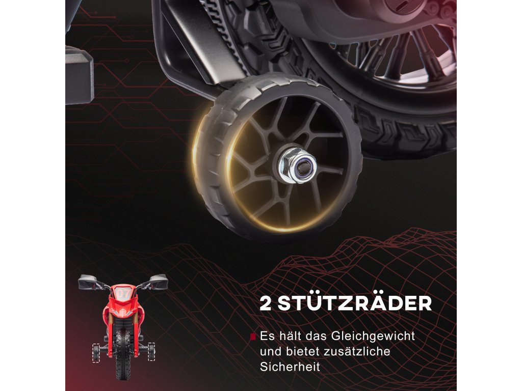 AIYAPLAY dětská elektrická motorka, 6V dětská motorka s tréninkovými koly, dětské vozidlo s klaksonem a startovacím zvukem, 3 km/h, pro děti od 3 do 8 let, max. 30 kg, červená barva