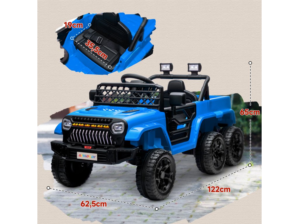 AIYAPLAY dětské elektrické autíčko, terénní vozidlo 12 V s dálkovým ovládáním 2,4G, dětské vozidlo se světly LED, měkkým startem, hudbou a klaksonem, 2,5-4 km/h, pro děti od 3 do 8 let, světle modrá barva