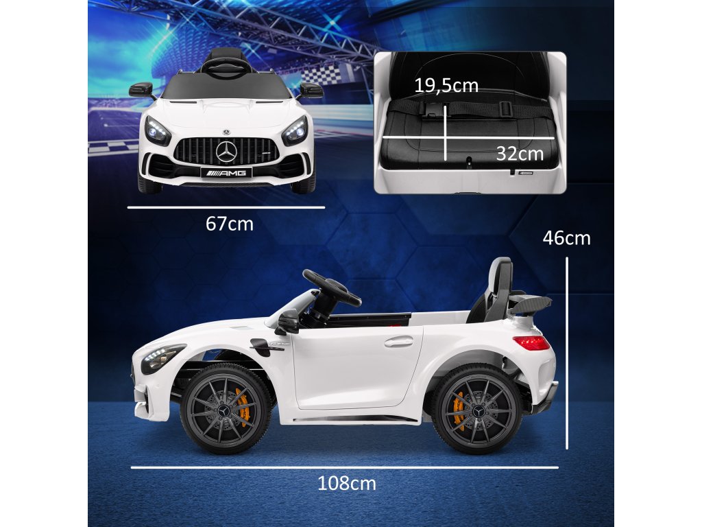 - Licencovaný design Mercedes-Benz: Toto 12V elektrické autíčko Mercedes-Benz AMG GTR pro děti kombinuje styl a funkčnost a nabízí vašemu malému řidiči vzrušující zážitek z jízdy