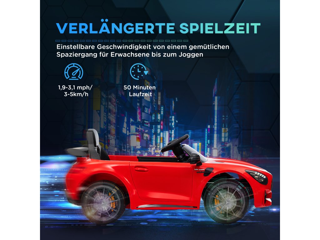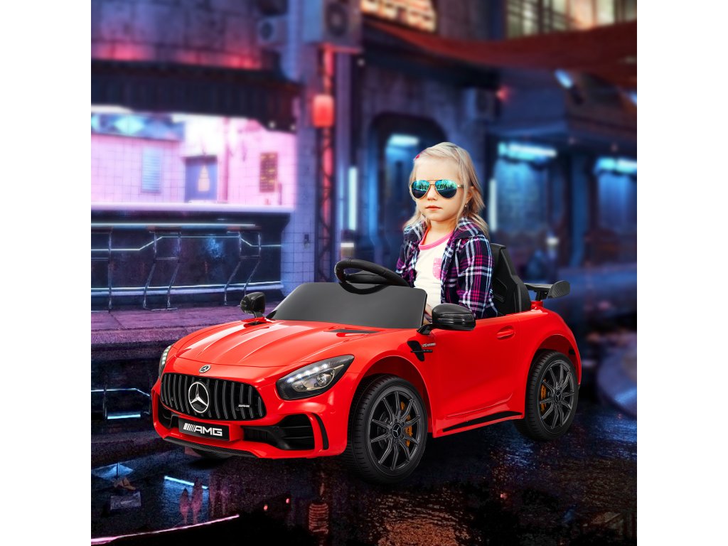 - Licencovaný design Mercedes-Benz: Toto 12V elektrické autíčko Mercedes-Benz AMG GTR pro děti kombinuje styl a funkčnost a nabízí vašemu malému řidiči vzrušující zážitek z jízdy