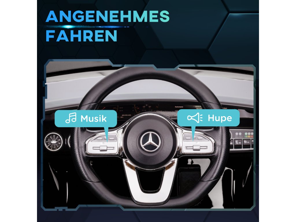 - Licence Mercedes: Toto dětské elektrické autíčko je vybaveno oficiální poznávací značkou Mercedes-AMG CLA 45 a nabízí vašim nejmenším autentický zážitek z jízdy