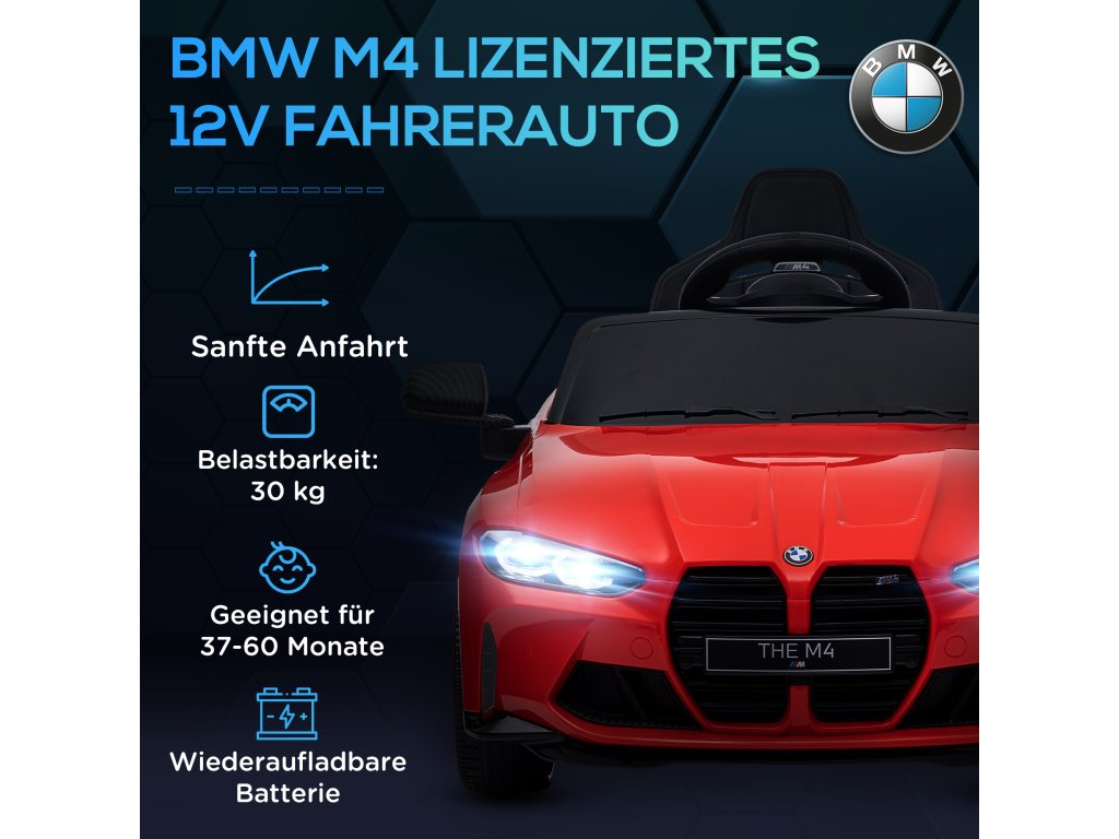 - ✔ Oficiálně licencované dětské elektrické autíčko BMW M4 na 12 V s dálkovým ovládáním a manuálním ovládáním