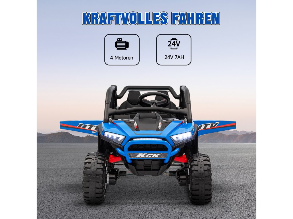 AIYAPLAY dětské elektrické auto, terénní vozidlo 24 V 5-7 km/h s připojením na hudbu, dětské vozidlo s dálkovým ovládáním 2,4G, světlomety, klaksonem, dětské elektrické vozidlo pro děti 3-8 let, modrá barva