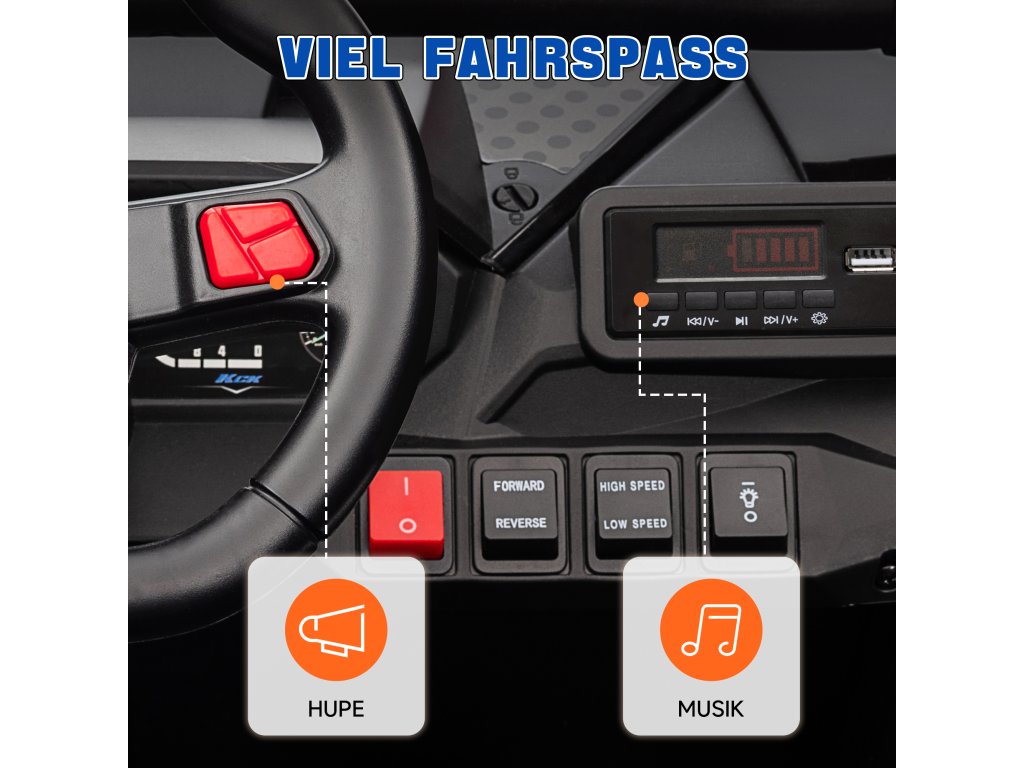 - 2místné UTV: Toto 24V baterií napájené dětské elektrické autíčko pro děti nabízí dvě sedadla vybavená bezpečnostními pásy, ideální pro přepravu malého pasažéra s sebou! Užijte si stylovou projížďku po okolí s kamarádem