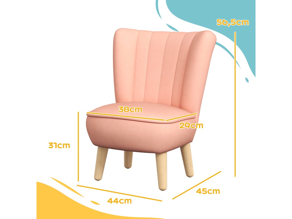 AIYAPLAY dětské křeslo sametový vzhled dětská židle pro děti 3-7 let dřevěné nohy do dětského pokoje a herny růžová | Aosom.de