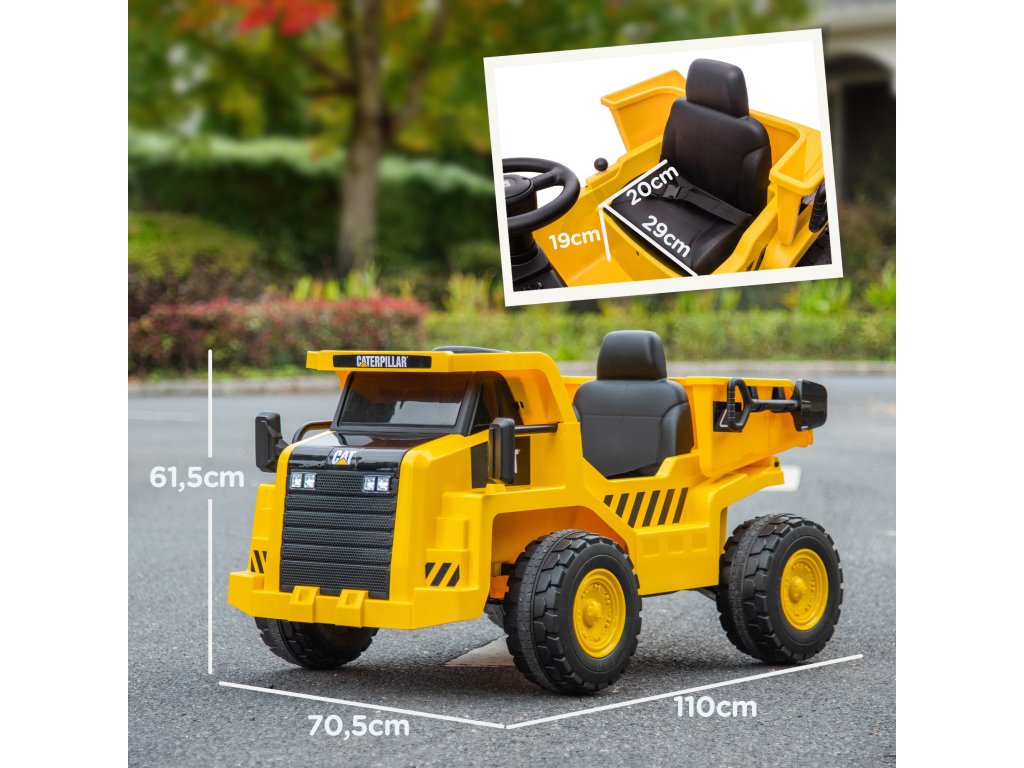 Uvolněte cestu skutečné stavební akci s tímto elektrickým bagrem od AIYAPLAY! Tento oficiálně licencovaný kolový nakladač Caterpillar umožňuje vašemu malému staviteli hloubit a převážet stavební materiál pomocí ovladatelné lopaty a sklápěče. Reálné zvukové efekty a hudba z reproduktoru elektrického vozu, stejně jako jasné světlomety zajišťují masivní stavební zábavu. Ideální pro malé stavitele, kteří jsou připraveni prozkoumat jakýkoli terén, od asfaltu po beton. Nezbytná výbava pro malé fanoušky stavění!