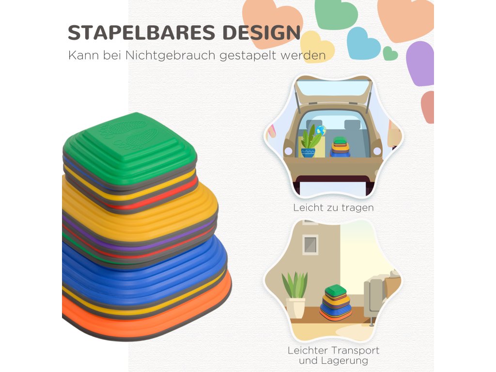 - Flexibilní zábava při hře: Senzorické balanční kameny jsou vhodné pro použití v interiéru i exteriéru, a vytvářejí tak flexibilní herní příležitosti na jakémkoli místě. Jsou také lehké a snadno se přenášejí