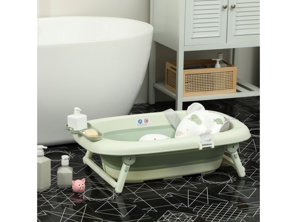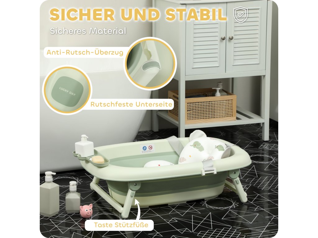AIYAPLAY sada 2 dětských vaniček, skládací dětská vanička s rámem, protiskluzová dětská vanička s polštářem do vany, vanička, sprchová vanička pro batolata 0-3 roky, zelená