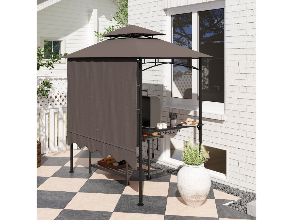 Altán na grilování 242x232x248 cm vodoodpudivý nehořlavý zahradní altán s dvouvrstvou střechou káva