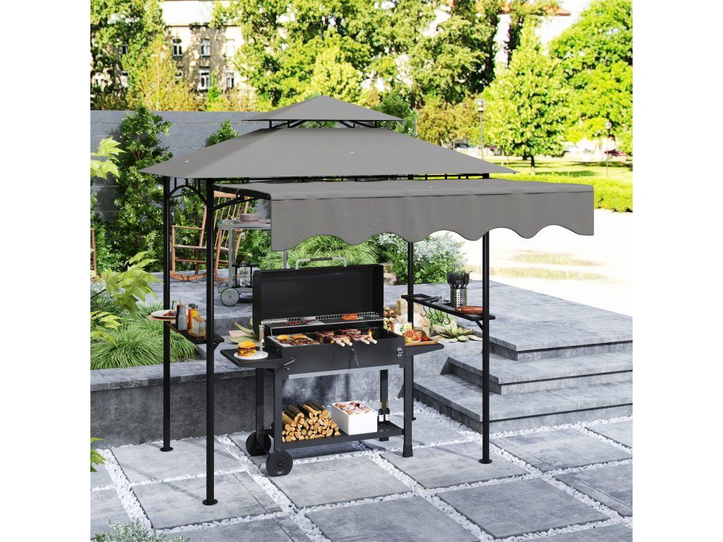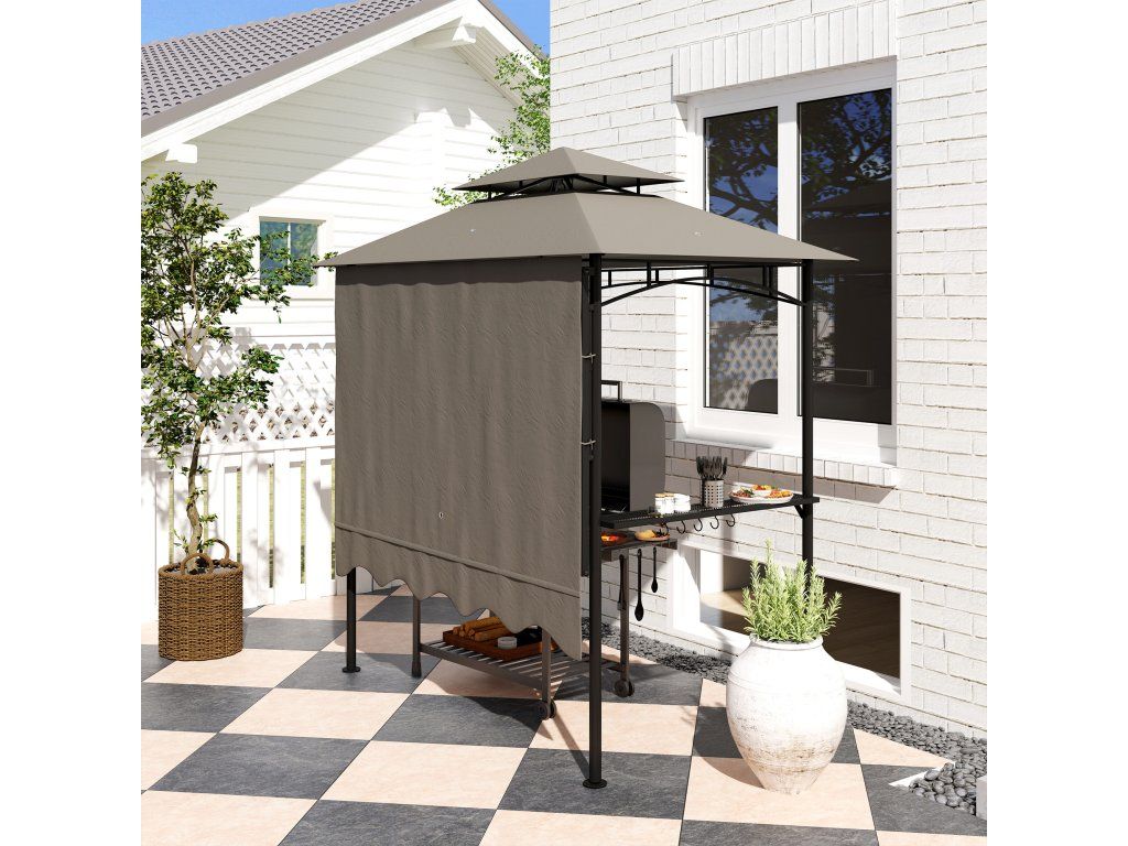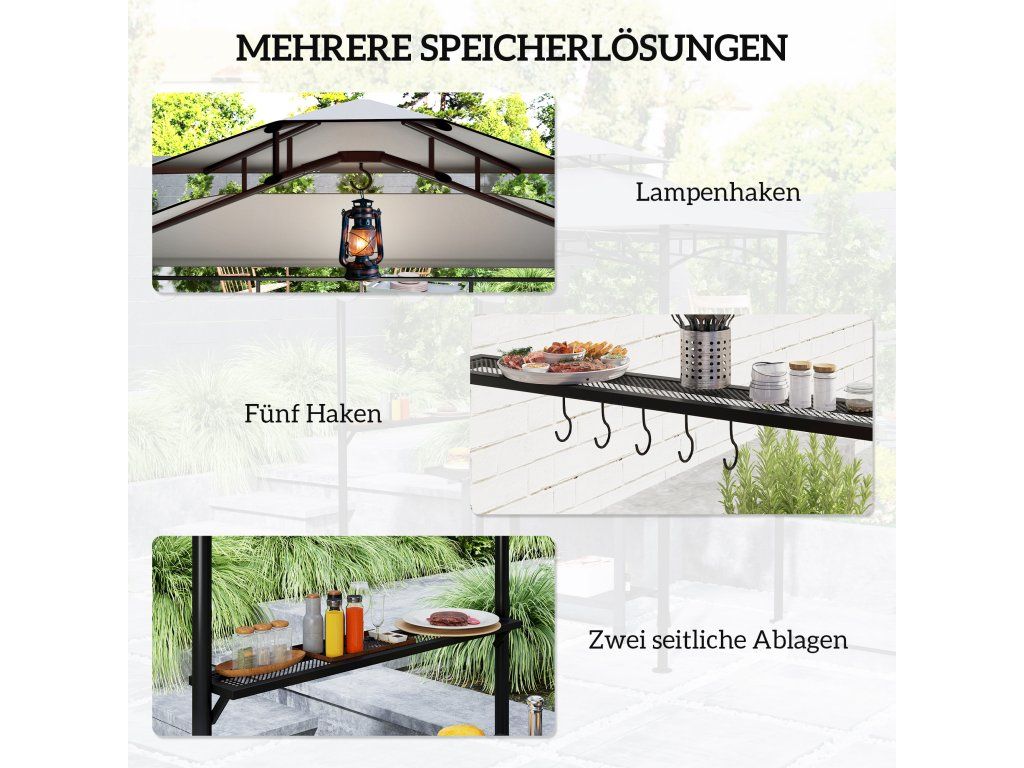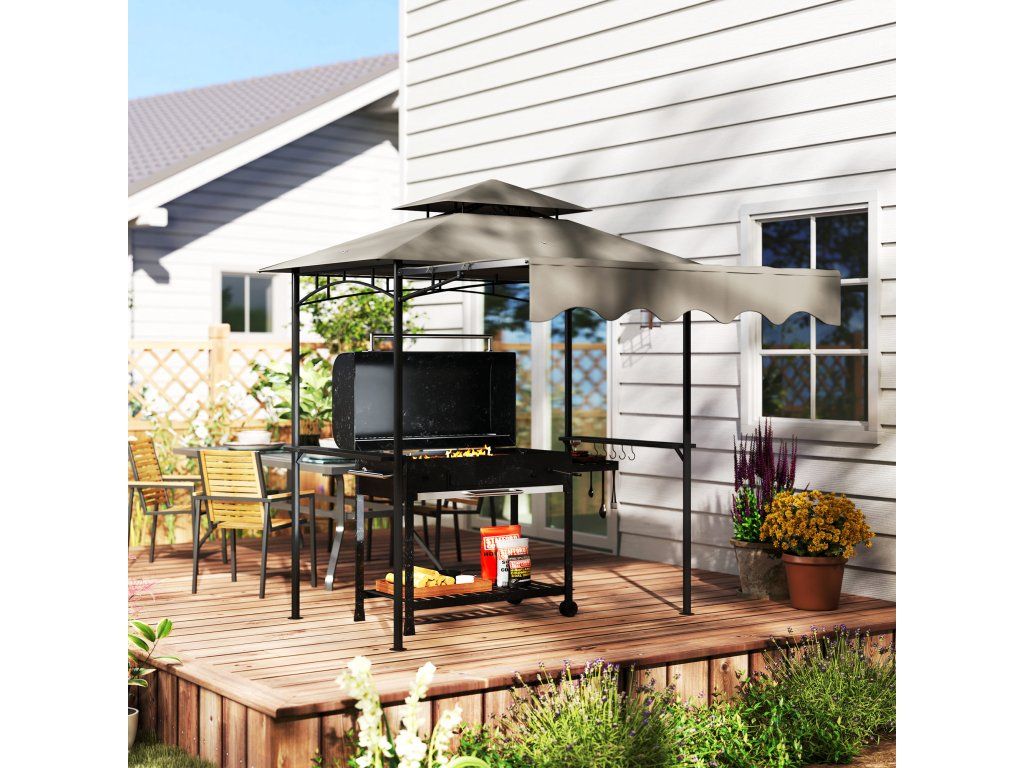 - ✔ Dvojitá horní konstrukce grilovacího altánu podporuje cirkulaci vzduchu a zabraňuje hromadění grilovacího kouře