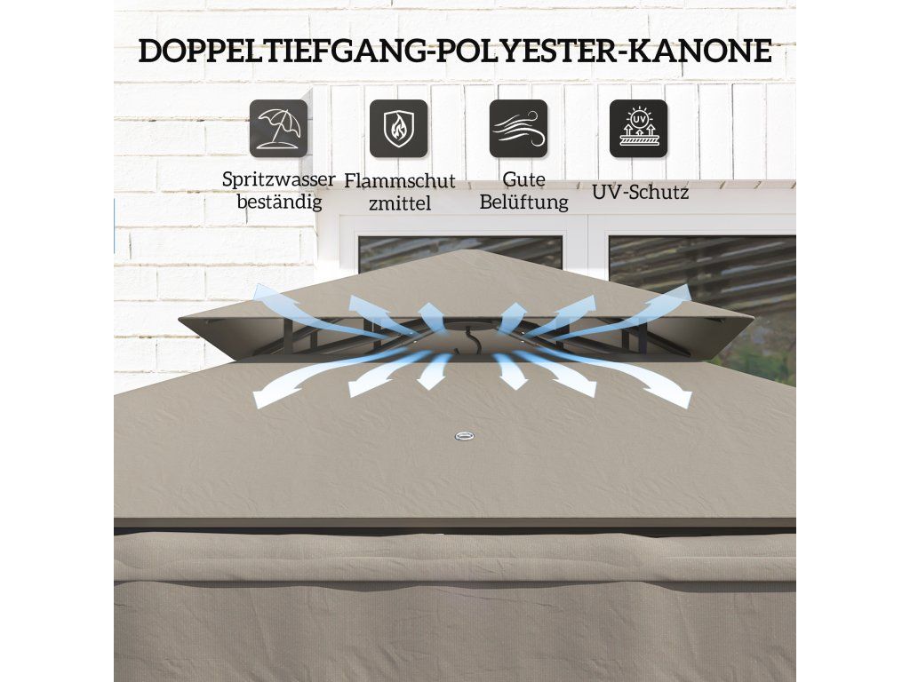 - Odvětrávaná konstrukce: Konstrukce s dvojitou střechou našeho grilovacího altánu zajišťuje vynikající cirkulaci vzduchu, rychlé rozptýlení kouře a dodatečnou bezpečnost díky střeše s PA povlakem, která je nehořlavá a odolná proti stříkající vodě.