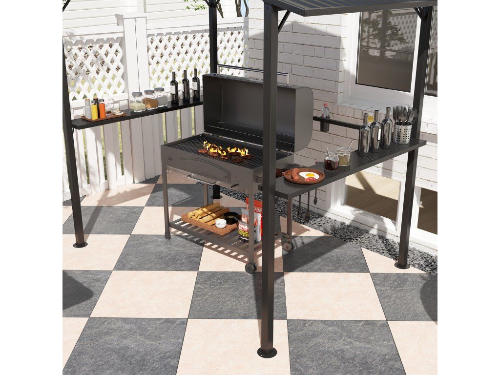 - ✔ Kovový rám grilovacího altánu s práškovým nástřikem je odolný vůči povětrnostním vlivům