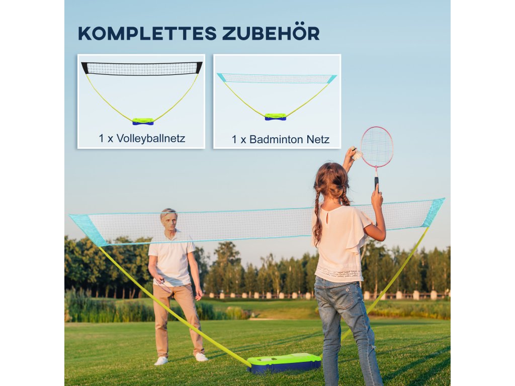 Badmintonový set 2 v 1 SPORTNOW s nastavitelnou sítí na badminton a volejbal, včetně přenosné tašky pro vnitřní i venkovní aktivity | Aosom.de