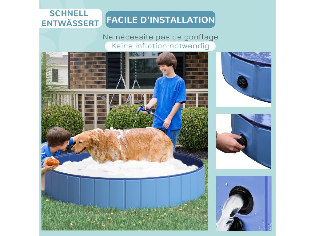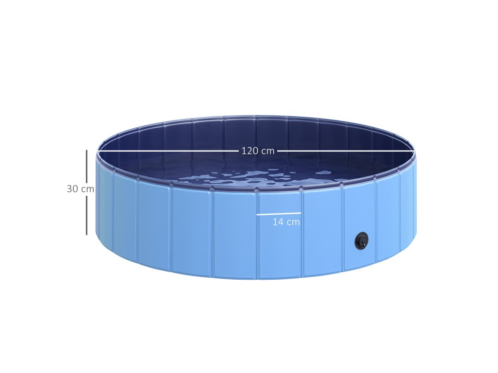 Bazén pro psy PawHut velké brouzdaliště pro psy Ø120xH30 cm z PVC modré barvy, ideální bazén pro letní ochlazení | Aosom.de