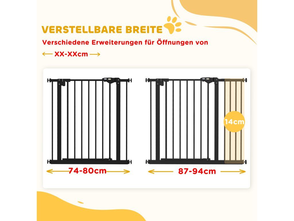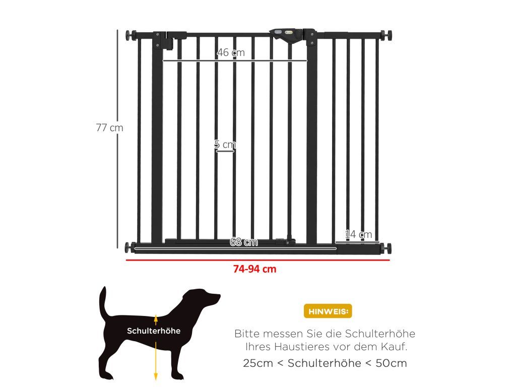 - Nastavitelná šířka: Díky přiloženým nástavcům se tato psí brána vejde do otvorů o šířce 74-80, 87-94 cm - ideální pro dveře, schodiště, chodby a další.