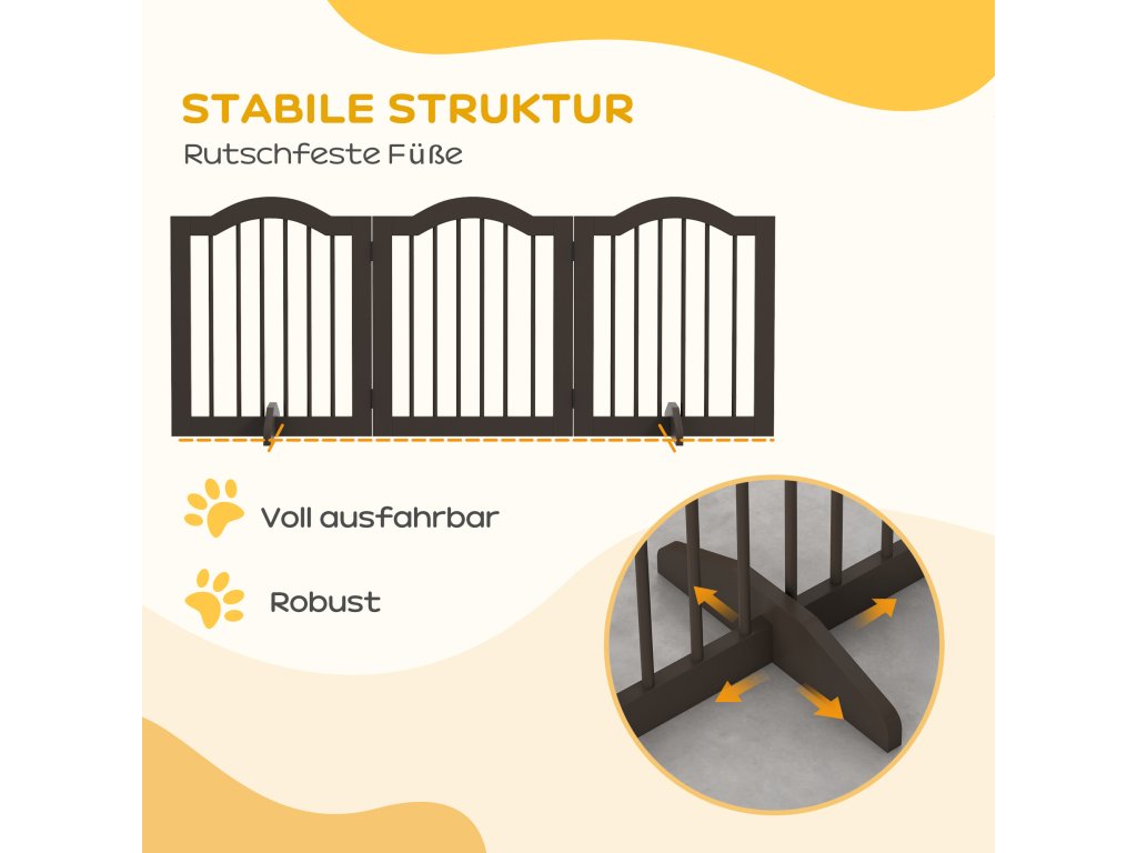 Bezpečnostní branka pro psy PawHut 3-dílná skládací konfigurační branka s opěrnými nožičkami schodišťová branka bezpečnostní dveřní branka káva 154,5 x 29,5 x 61 cm | Aosom.de