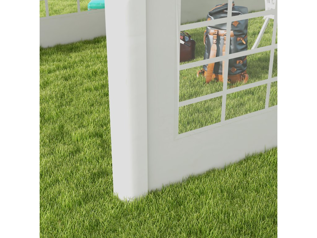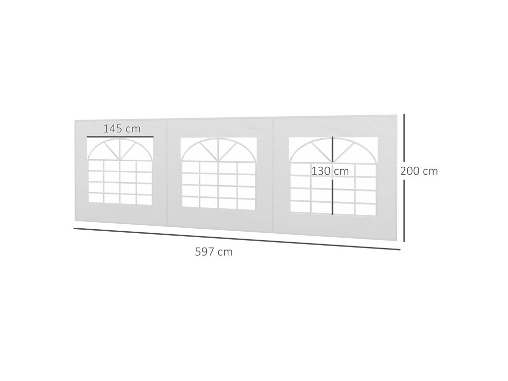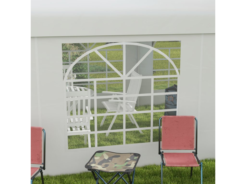 Obnovte svůj zahradní nábytek pomocí naší náhradní stěny Outsunny pro párty stany nebo přístřešky pro auta s délkou strany 6 metrů. Je vyrobena z vodoodpudivé, robustní plachty pro dlouhodobé venkovní použití. Tři okna přivádějí světlo a vytvářejí útulnou atmosféru. Snadno se připevňuje pomocí elastických popruhů a suchých zipů. Upozornění - součástí balení je pouze boční stěna, střecha ani rám pavilonu nejsou součástí dodávky.