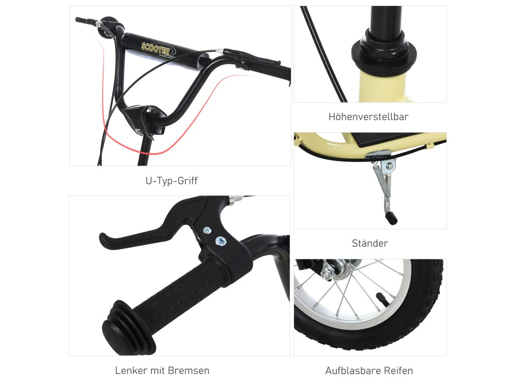 Dětská koloběžka HOMCOM od 5 let, koloběžka, odrážedlo, městská koloběžka s 12palcovými pneumatikami a gumovým odrazovým panelem pro bezpečnou zábavu při jízdě | Aosom.de