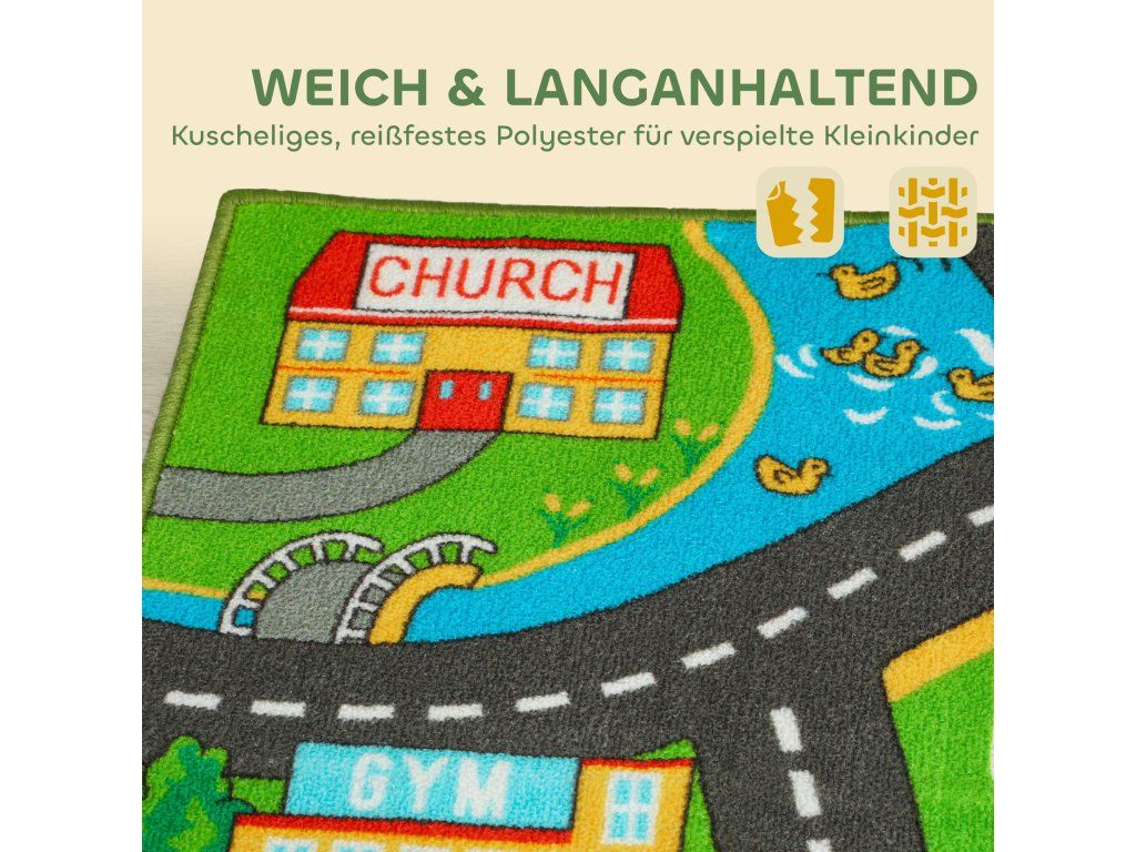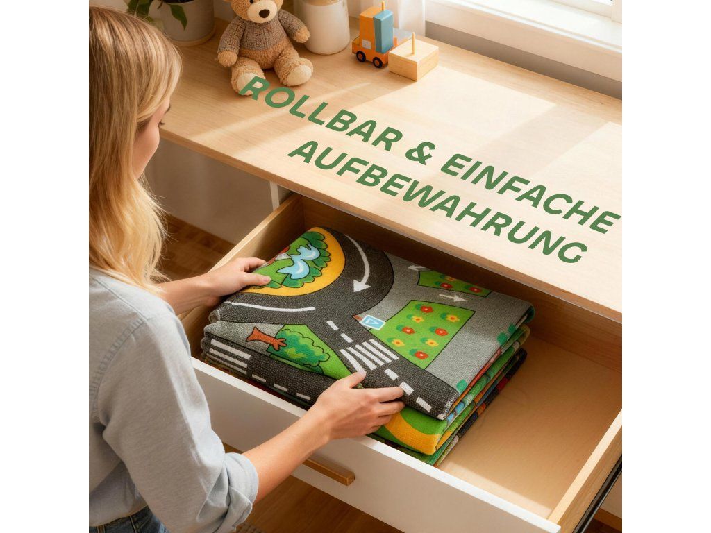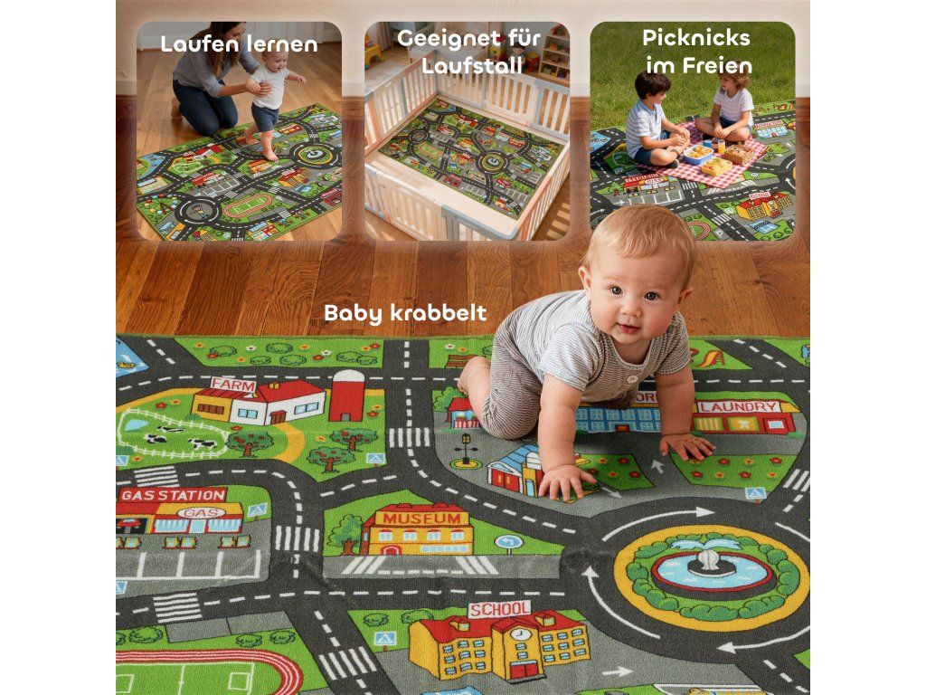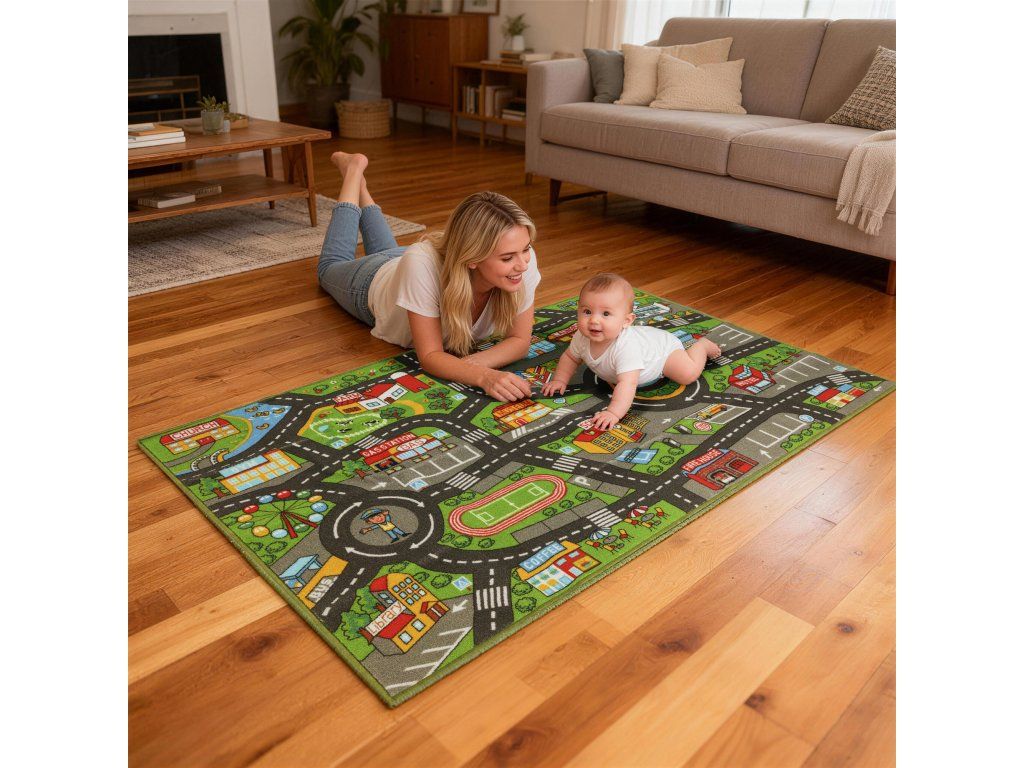 - Stimuluje představivost: Tato dětská hrací podložka o rozměrech 160 x 100 cm se rozvine v interaktivní město, které vybízí děti ke hraní rolí s jejich autíčky, hravému zkoumání silničního provozu a vymýšlení nesčetných příběhů během drahocenných rodinných chvil.