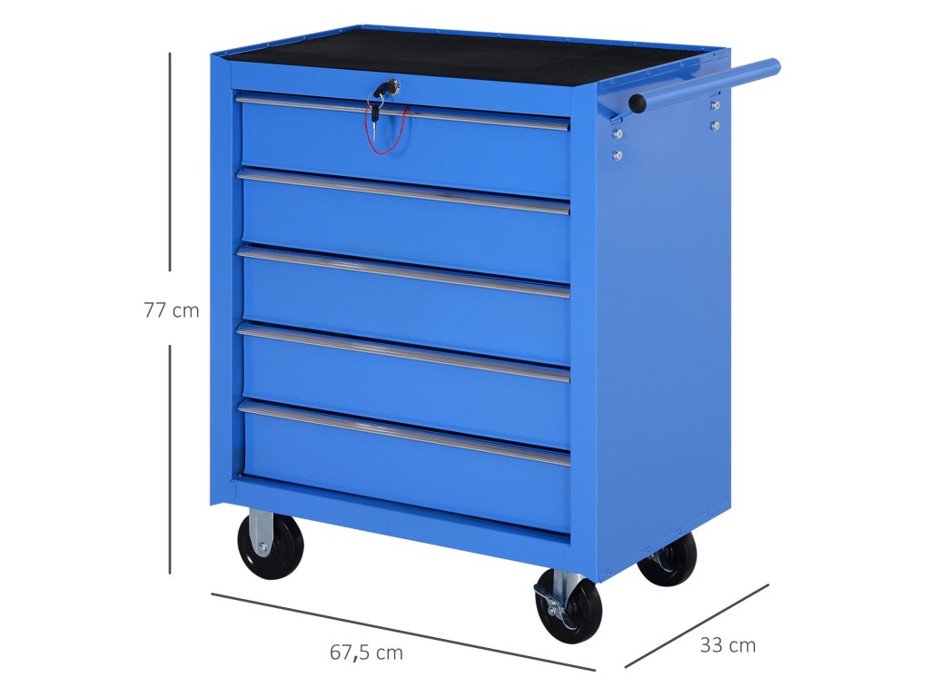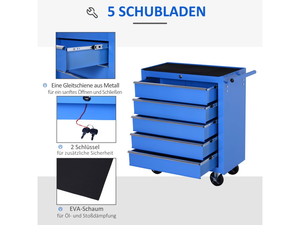 Dílenský vozík HOMCOM pojízdný vozík na nářadí s 5 zásuvkami, červený vozík, praktický box na nářadí do garáže a dílny | Aosom.de