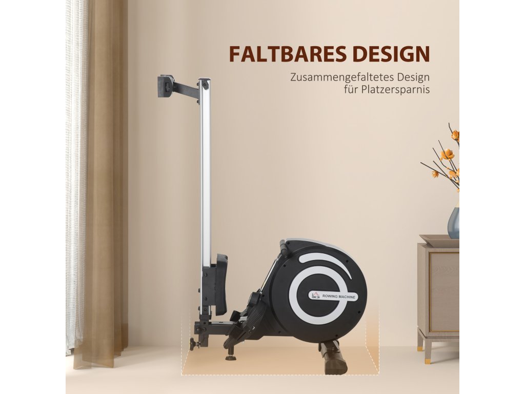 Domácí veslovací trenažér HOMCOM, skládací veslovací trenažér s 8stupňovým magnetickým brzdným systémem, LCD displej, pro trénink celého těla, hliník, černý | Aosom