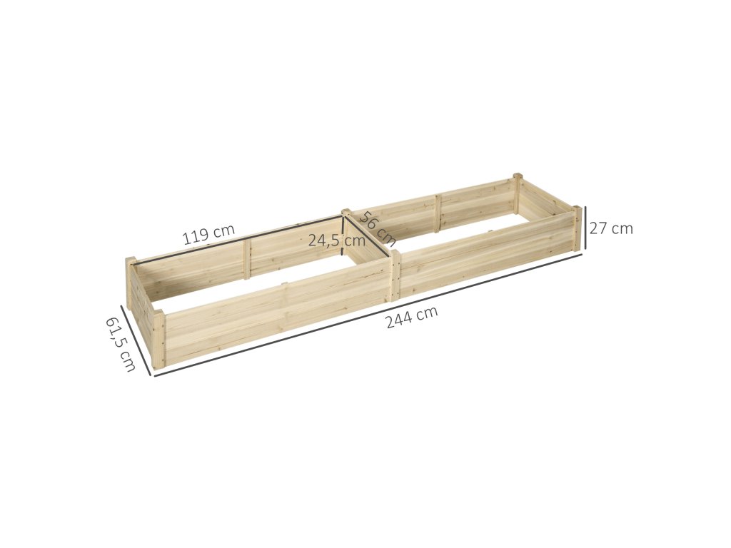 Dřevěný truhlík na květiny Outsunny se 2 plochami pro zeleninu a bylinky, přírodní, 244x61,5x27cm| Aosom