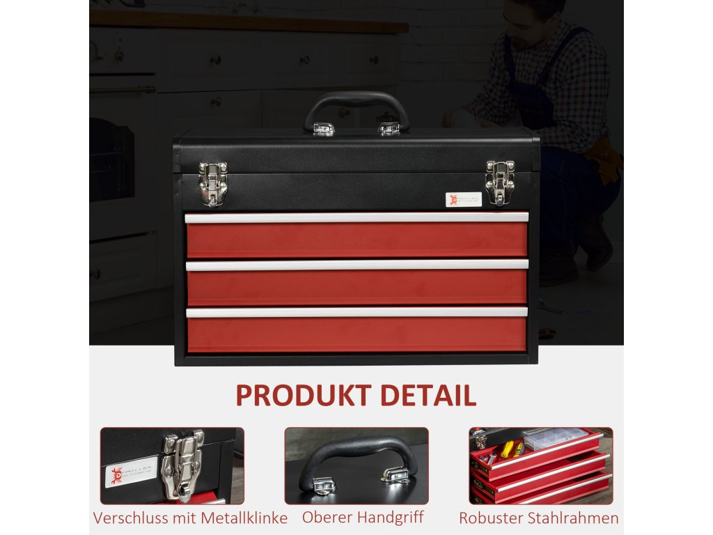 DURHAND box na nářadí praktický box na nářadí bez nářadí 3 zásuvky s rukojetí zámek z oceli černá červená | Aosom.de