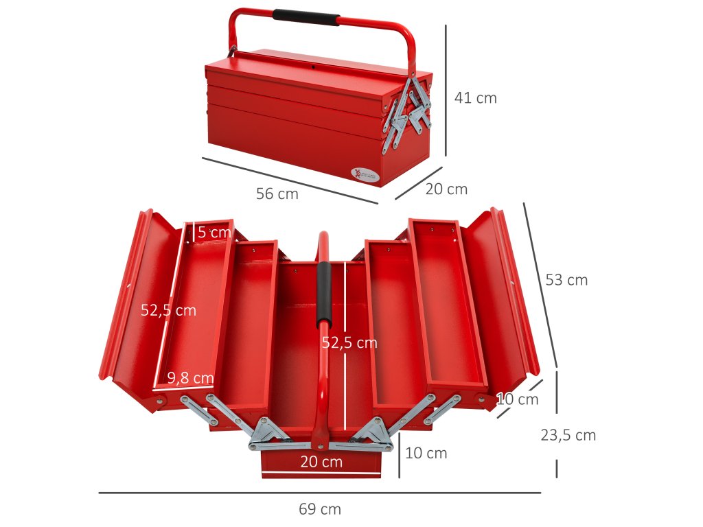 DURHAND kufr na nářadí kufr na nářadí 5 přihrádek ocelový výklopný (SPCC) červený 57 x 21 x 41 cm | Aosom