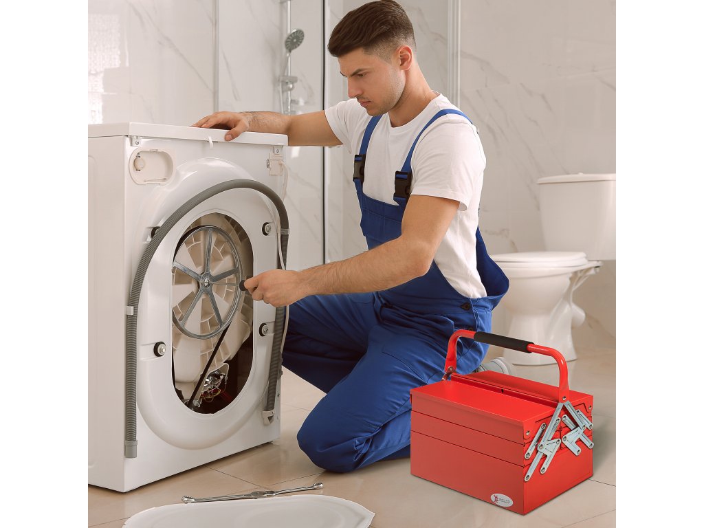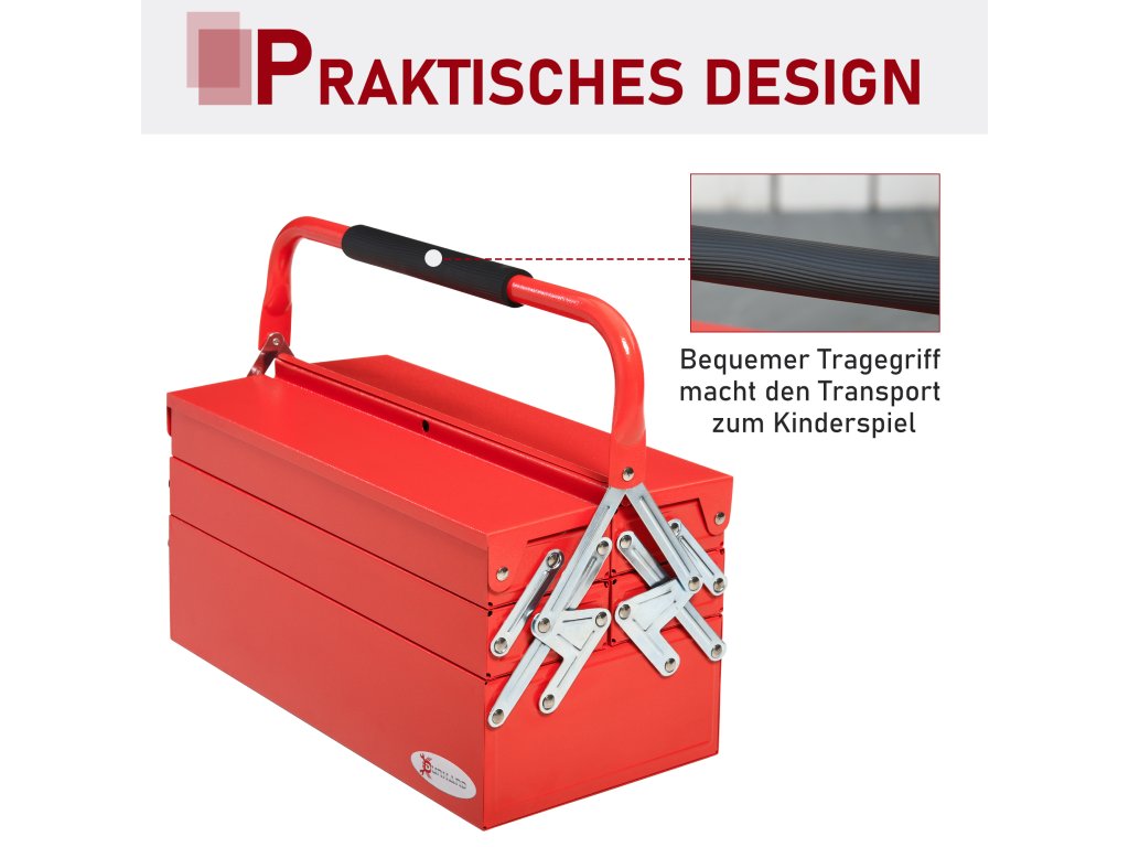 DURHAND kufr na nářadí s 5 přihrádkami na pantech z robustní oceli SPCC červený 45x22,5x34,5cm pro organizaci a přepravu | Aosom.de