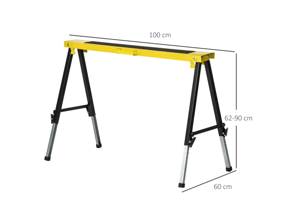 DURHAND sada 2 pilových koní Skládací pracovní kozlíky protiskluzové ocelové žluté černé 100 x 49 x 62-90 cm s nosností 100 kg | Aosom.de