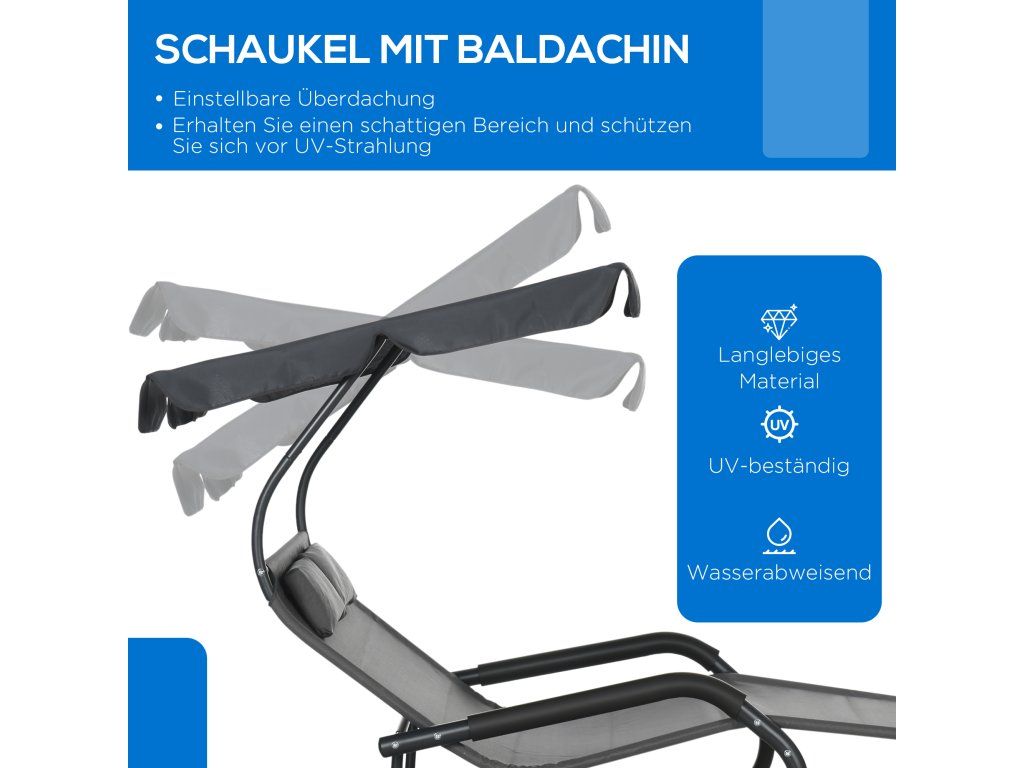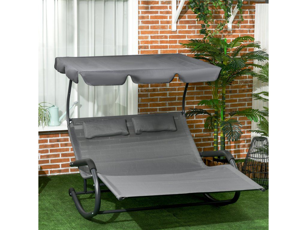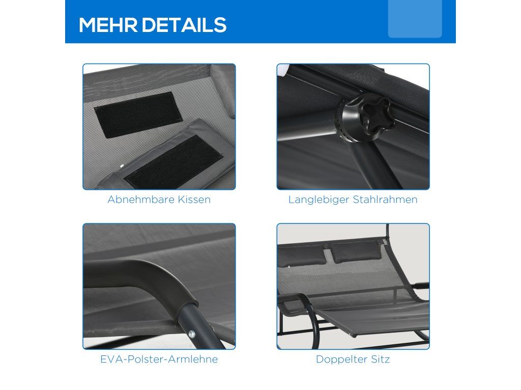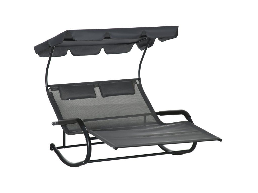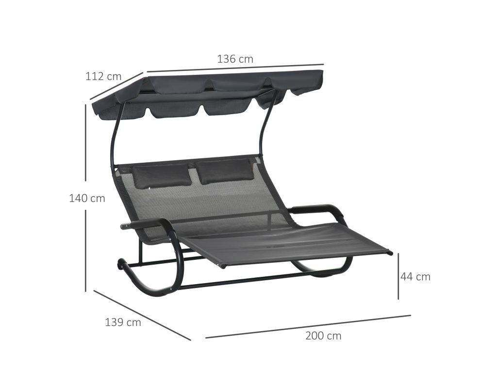 Dvojité lehátko pro 2 osoby, včetně polštářů a stříšky, 200 cm x 139 cm x 140 cm, tmavě šedé