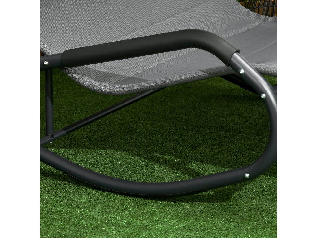 Toto venkovní dvojité lehátko od [NÁZEV ZNAČKY] vybízí k relaxaci a odpočinku. Lehátko se skládá z ocelového rámu a prodyšné síťované tkaniny. Materiál je pevný, odolný a vhodný pro každodenní používání. Stříška odolná proti povětrnostním vlivům chrání před přílišným sluncem a lehkým deštěm. Díky dvěma kolečkům lze lehátko bez námahy přemisťovat z jednoho místa na druhé.