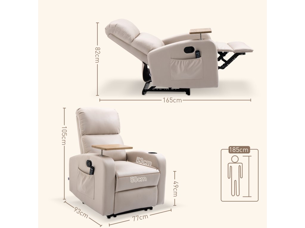 - Funkčnost: Toto polohovatelné lehátko s masážní funkcí je vybaveno také otočným stolkem, dvěma bočními kapsami, držákem na nápoje v jedné područce a dálkovým ovladačem pro snadné nastavení masážní funkce