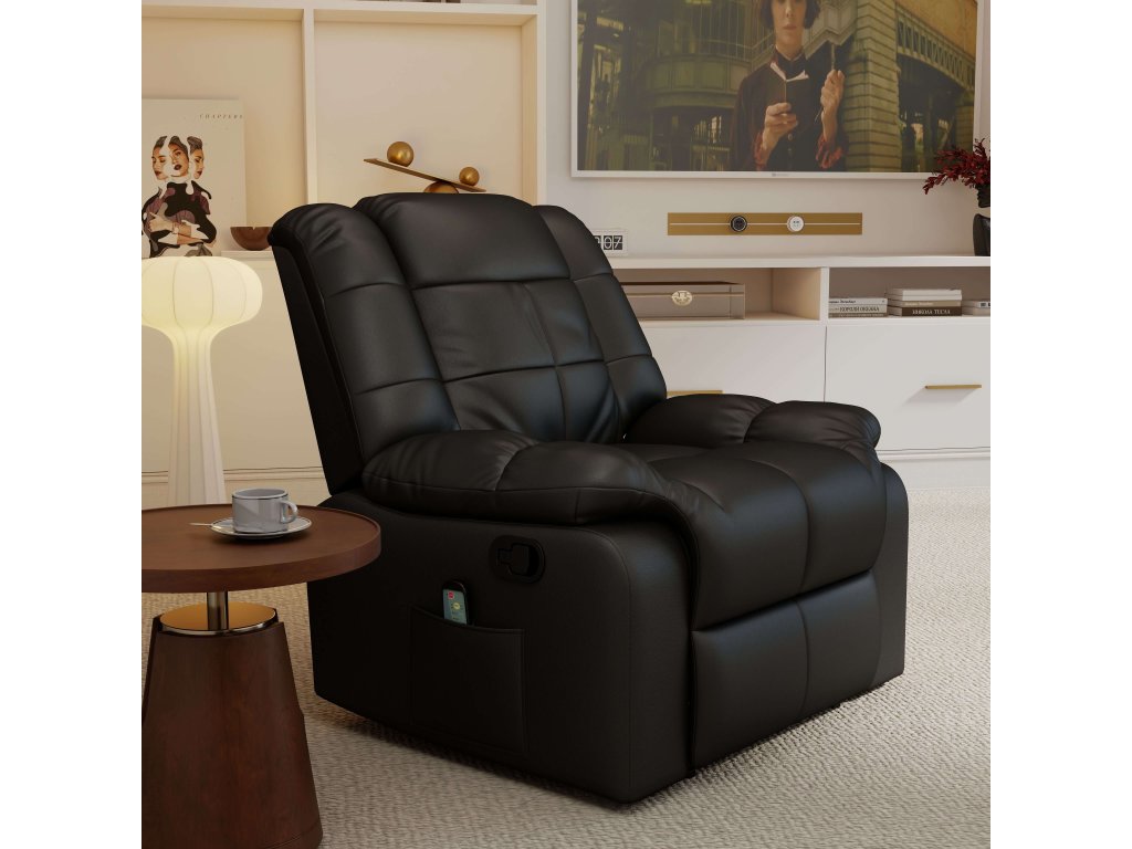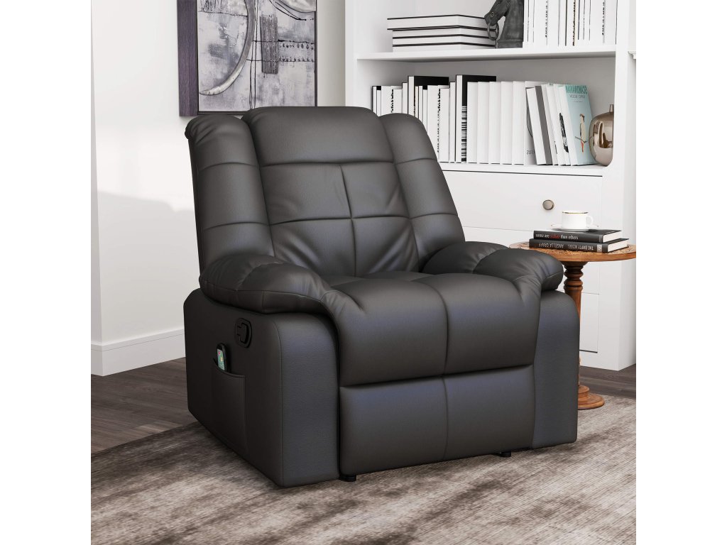 Elektrické polohovací křeslo HOMCOM s masážní funkcí z imitace kůže, dřeva a oceli, černé 94x99x99 cm pro maximální pohodlí | Aosom.de