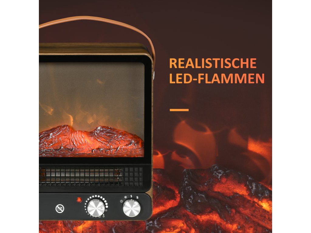Elektrický krb HOMCOM 750/1500W s efektem plamene, ochranou proti přehřátí, tichý, nastavitelný volně stojící krb s rukojetí pro příjemné večery | Aosom.de