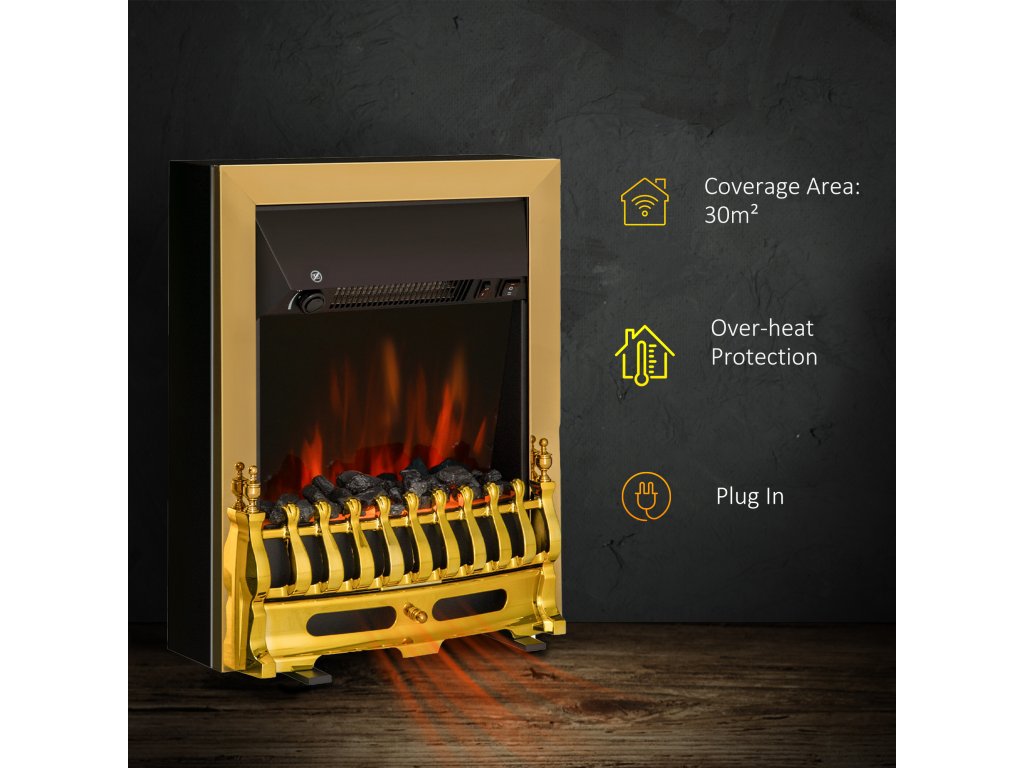 Elektrický krb HOMCOM Stojanový krb s efektem plamene 1000/2000W 48,2 x 18,5 x 59,2 cm ve zlaté barvě pro příjemné večery |