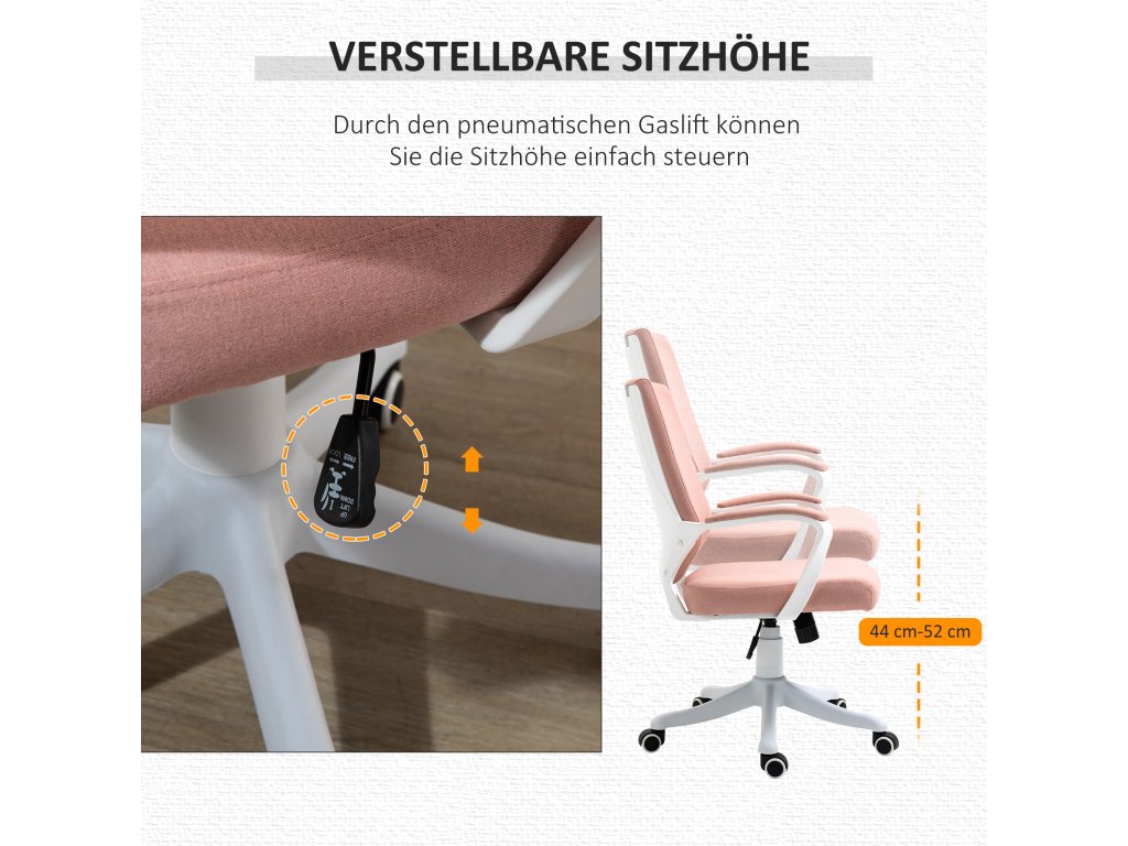 Tato pracovní židle od společnosti Vinsetto umožňuje pohodlné dlouhé sezení. Díky měkkému čalounění a měkkému vnějšímu materiálu je sezení pohodlné a příjemné. Ergonomicky tvarované opěradlo pomáhá zmírnit zátěž zad během dlouhé pracovní doby. Moderní design se hodí k mnoha stylům nábytku. Tato počítačová židle od společnosti Vinsetto je k dispozici také v módních barvách, například v módní pastelově růžové.