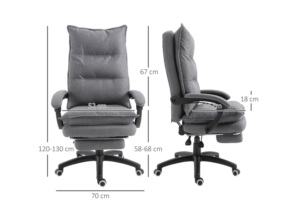 - Informace o kancelářské židli: Maximální nosnost: 120 kg. Celkové rozměry: 70 Š x 62 H x 120-130 V cm, plocha pro naklápění: 70 Š x 123 H x 96-106 V cm