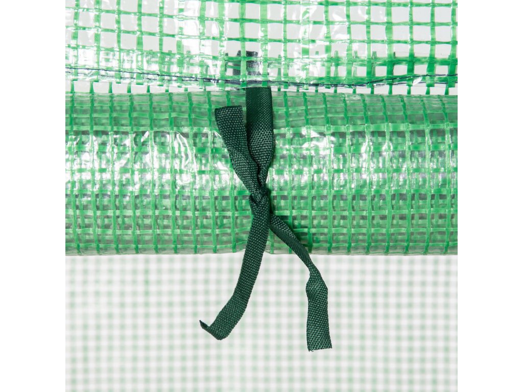 - ✔ Tipp: Die Folie des Gewächshauses ist an der Seite jeweils 10 cm länger als die Metallrohre. Die untere Kante kann in den Boden eingegraben oder mit Steinen beschwert werden. Dadurch wird das Gewächshaus stabiler
