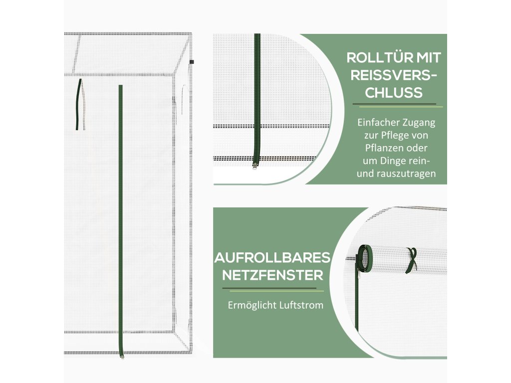 Fóliový skleník Outsunny 200x68x196cm s rolovacími dveřmi a bočním oknem, odolný proti větru, ocel a PE, ideální pro zahradní rostliny