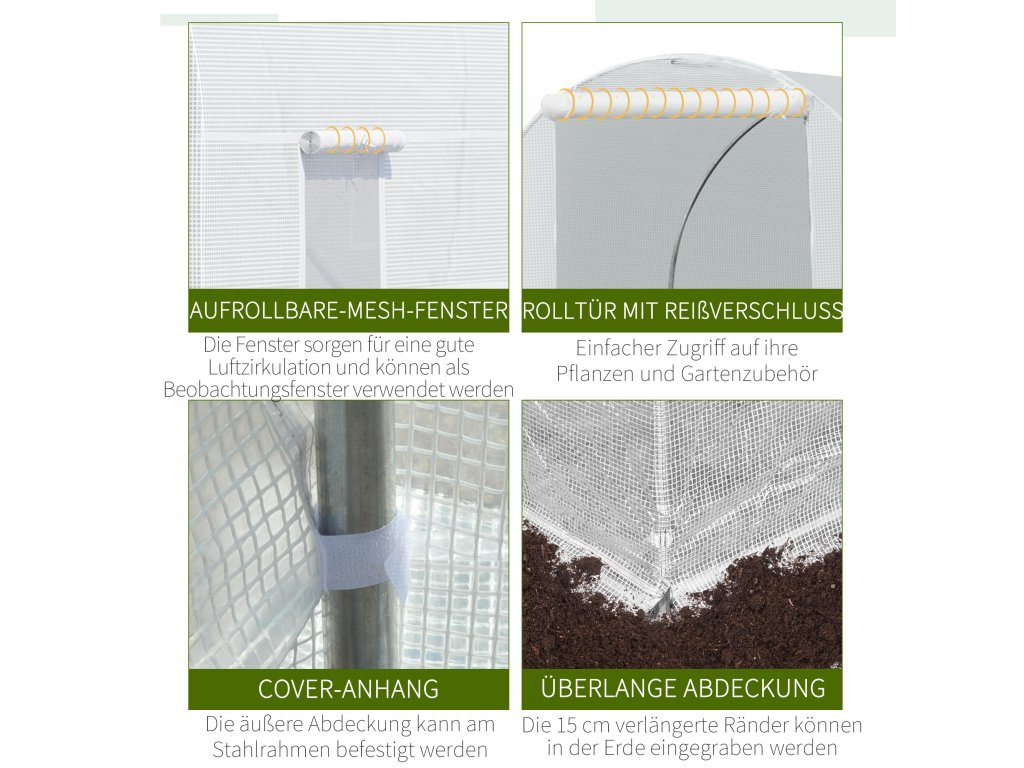 - VYSOKÁ KVALITA MATERIÁLŮ: Robustní kovový rám se čtyřmi šikmými podpěrami zajišťuje vysokou stabilitu. Odolný průhledný kryt z PE plastu chrání rostliny před povětrnostními vlivy a predátory a zároveň propouští vysoce energetické sluneční světlo. Kryt udržuje vlhkost, takže můžete vytvořit vhodné podmínky pro pěstování i tropických rostlin.