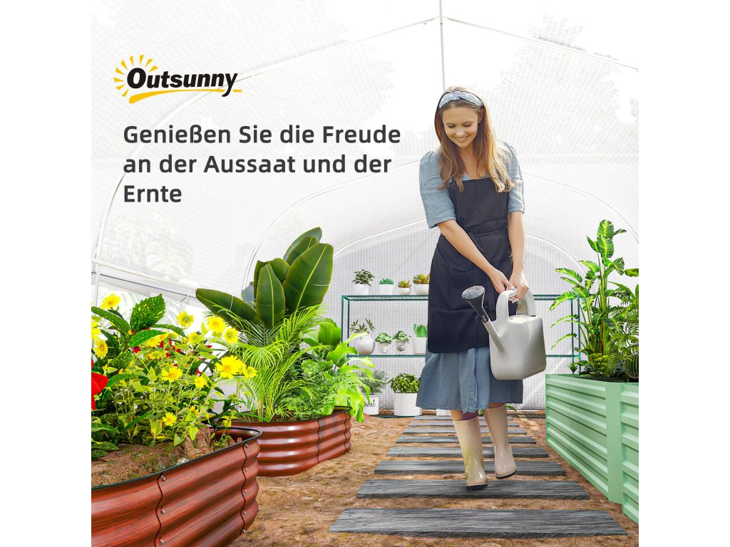 - Prostorná konstrukce: Velký zahradní skleník na rajčata Outsunny nabízí optimální prostor pro pěstování nejrůznějších rostlin i pro umístění vyvýšených záhonů a polic a ponechává dostatek místa pro péči o rostliny
