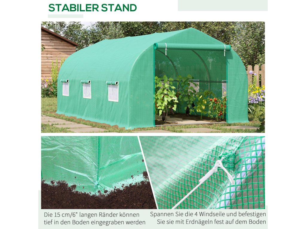 - Údaje o výrobku: Skleník je vyroben z vysoce kvalitního materiálu, který je vhodný pro pěstování v přírodě: Celkové rozměry: 450L × 300W × 205H cm. Nutná montáž UPOZORNĚNÍ: Abyste prodloužili jeho životnost, musíte ho sami zpevnit proti nepříznivému počasí (vítr, déšť, sníh, kroupy atd.).