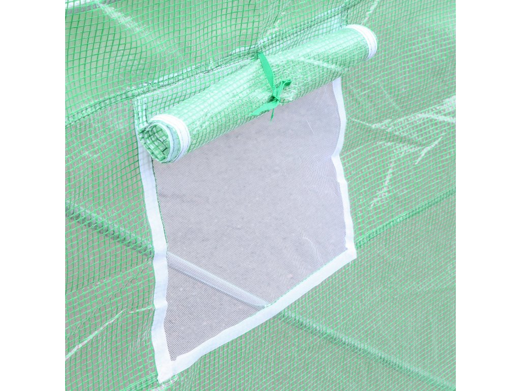 - Odolný ocelový rám: Zkonstruován z odolného pozinkovaného ocelového rámu s pevnou a robustní konstrukcí, který je odolný proti korozi, odlupování a odlupování. Přídavné šikmé podpěrné tyče pro větší stabilitu a stabilnější skleník