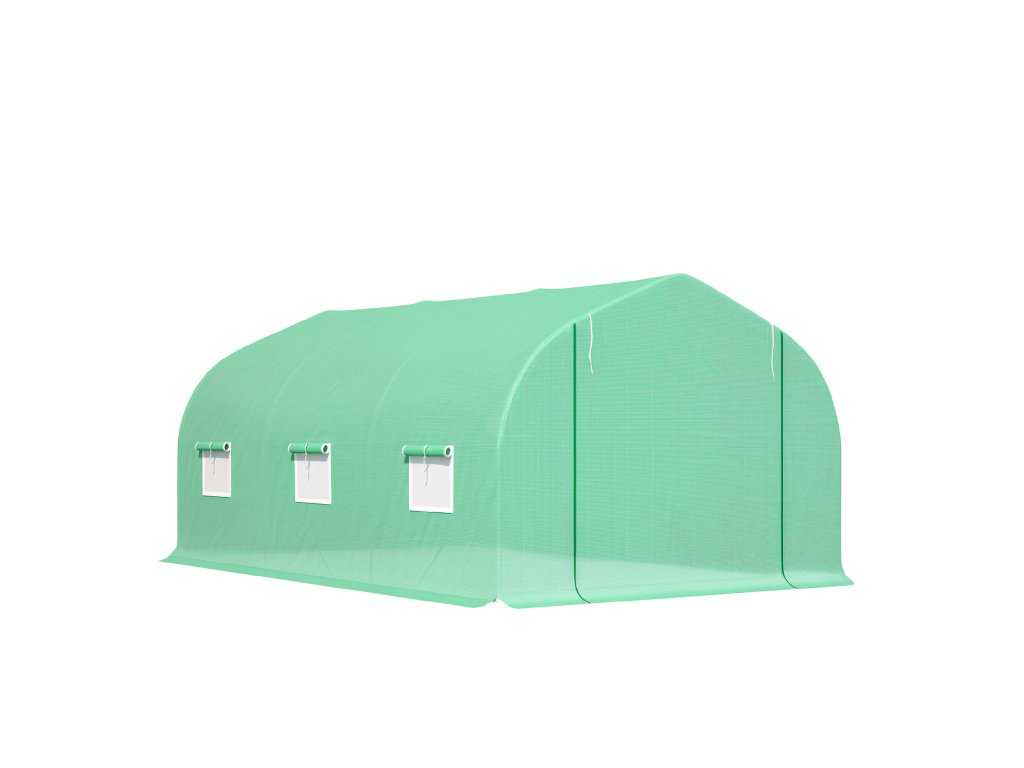 - Zelený plastový kryt: Plně uzavřený, vodotěsný plastový kryt odolný proti UV záření, který udržuje vysokou vlhkost pro pěstování tropických rostlin a propouští výživné sluneční světlo
